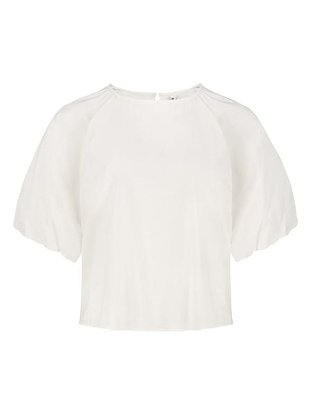 – dekolt: okrągły- zapięcie: guzik na plecach- krój rękawów: bufiasty- krój: cropped- look: jednokolorowy