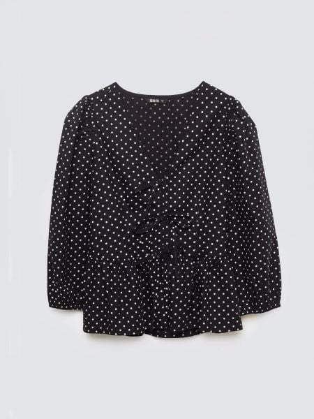 Bluzka damska z baskinką w kropki czarna Sori 906