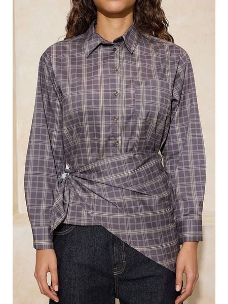 – kołnierz: kent- zapięcie: listwa guzikowa- zakończenie rękawów: guzik- krój: prosty- wzór: kratka
