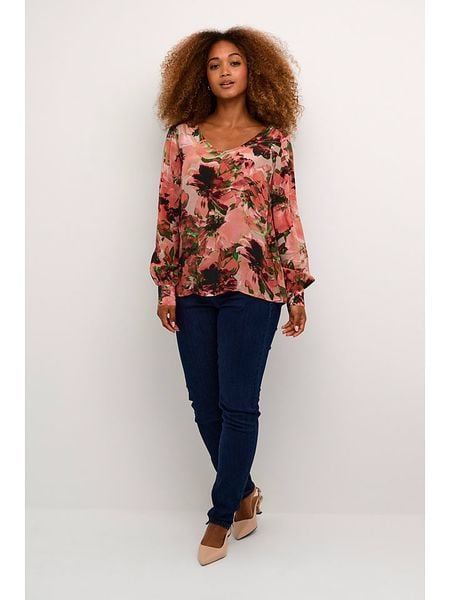 – czysta wiskoza- dekolt: okrągły- zakończenie rękawów: guziki- krój: prosty- wzór: kwiatowy