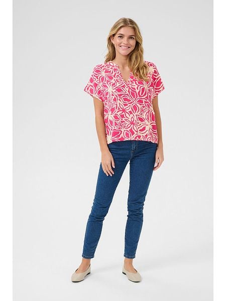 Różowa bluzka Tropica Owocowa Fiesta z dekoltem V PLUS SIZE XXL OVERSIZE