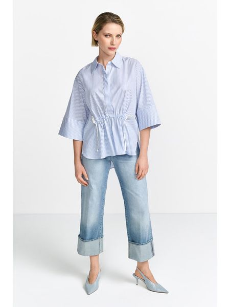 – kołnierz: kent- krój rękawów: nietoperz- talia: ściągacz tunelowy- detale: nakładane rękawki- krój: luźny- wzór: paski
