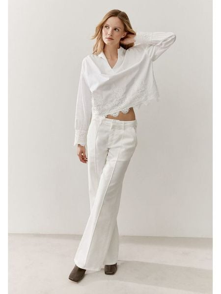 – kołnierz: stójka- dekolt: z rozcięciem- detale: koronka- krój: luźny- look: jednokolorowy