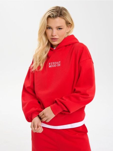 Sinsay – Bluza hoodie z bawełną – czerwony –