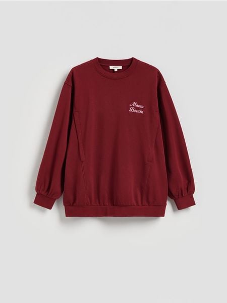 Bawełniana bluza z haftem – bordowy