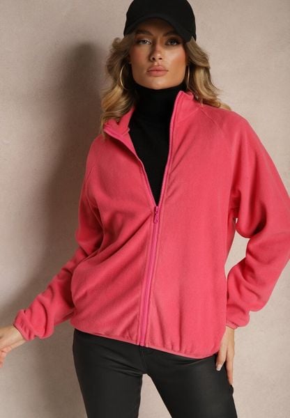Różowa Bluza Polar z Zapięciem na Suwak Kieszeniami i Stójką Esandria