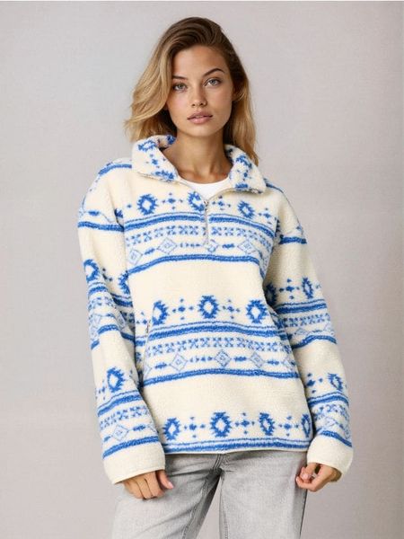 Bluza sherpa ze stójką na zamek – wielobarwny