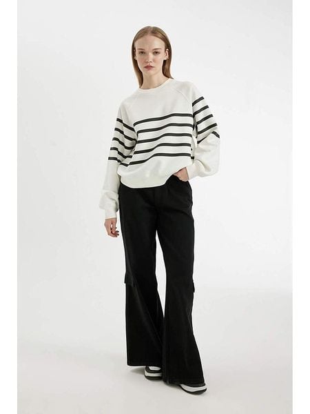 – dekolt: okrągły- ściągacz: dekolt, zakończenia rękawów, dolny brzeg- krój: luźny- wzór: paski