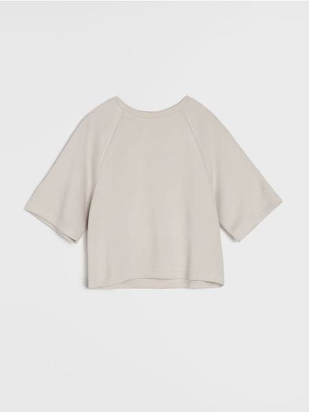Sinsay – Bluza comfort z krótkim rękawem z dodatkiem wiskozy – kremowy – jakość soft touch – bardzo miękka w dotyku dzianina z dodatkiem wiskozy