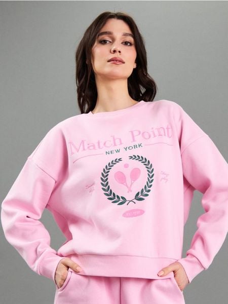 Sinsay – Bawełniana bluza crewneck z haftem – begonia –
