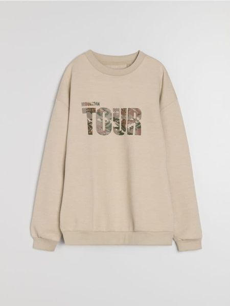 Sinsay – Bluza crewneck z napisem – beżowy –