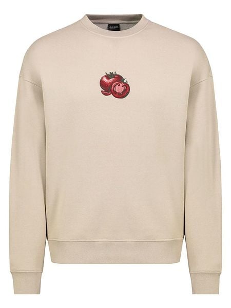 Nierozpinana dresowa bluza męska z naszywką - beżowa V3 - Rozmiar: S