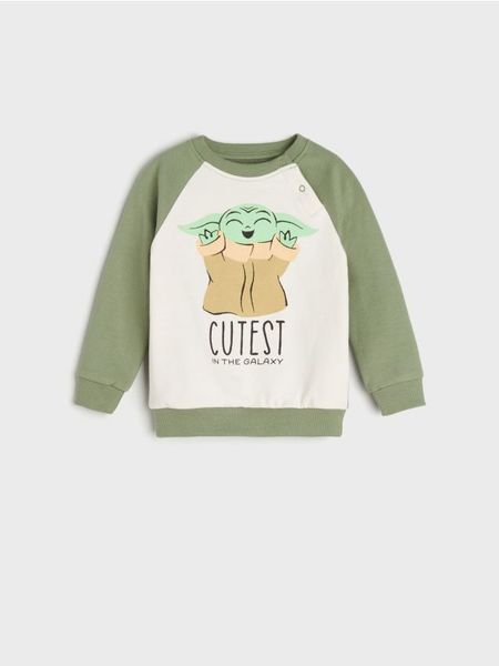 Sinsay – Bluza Baby Yoda – kremowy – motyw Mandalorian,długie, raglanowe rękawy,wykończenie ściągaczami,zapięcie na zatrzaski,okrągły dekolt,100% bawełna
