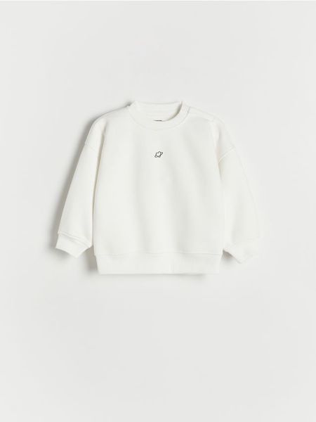 Bluza o prostym fasonie, uszyta z ciepłej dzianiny z bawełną.