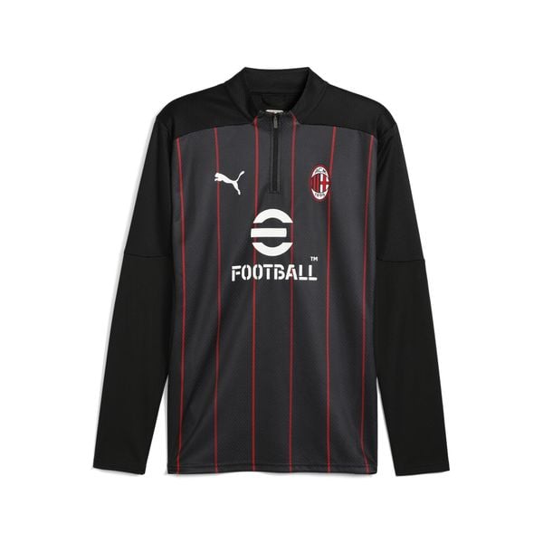 Męska bluza przedmeczowa AC Milan z zamkiem 1/4 PUMA Black For All Time Red