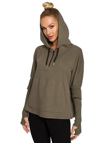 – kaptur: przymocowane tasiemki – zapięcie: skrócony zamek błyskawiczny – długość rękawa: półdługi – zakończenia rękawów: z otworem na kciuk- kieszenie: kieszeń kangurka – krój: luźny- look: jednokolorowy