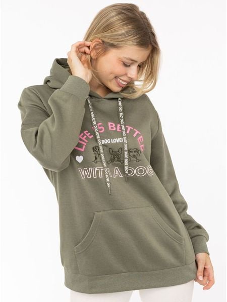 Zwillingsherz Bluza „Dog Life” w kolorze khaki rozmiar: L/XL