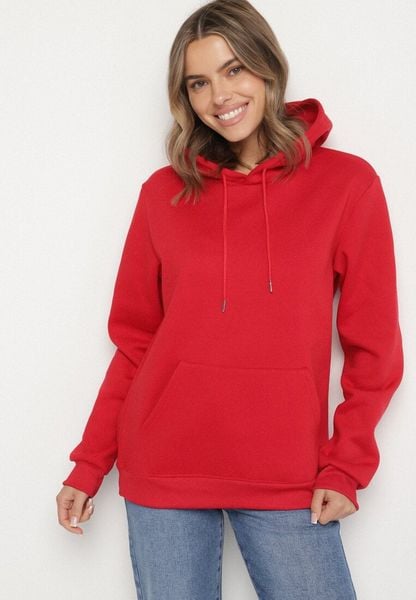 Czerwona Bluza z Kapturem i Kangurkową Kieszenią Envila