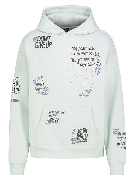 – kaptur: tak- kieszenie: kieszeń kangurka- krój: luźny- nadruk: w formie napisu- look: jednokolorowy