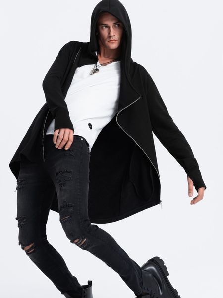 Asymetryczna bluza męska z obszernym kapturem NANTES – czarna – Rozmiar: S