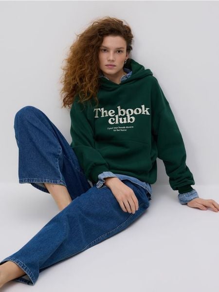 Bluza z haftowanym napisem – ciemnozielony