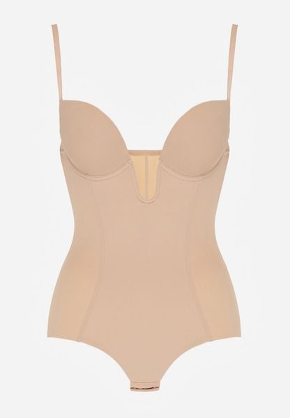 Beżowe Bieliźniane Body Modelujące z Wyciętym Dekoltem Theloria