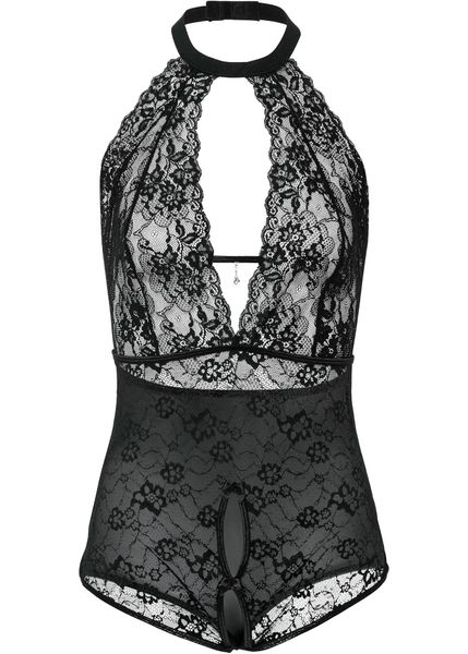 Zmysłowe body ze stringami ouvert i piękną koronką.