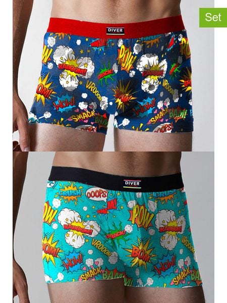 W zestawie:- 2 pary bokserek- pas / ściągacz: elastyczny- przednia podszewka: tak- wycięcia nogawek: elastyczne- nadruk: graficzny- wzór: na całości