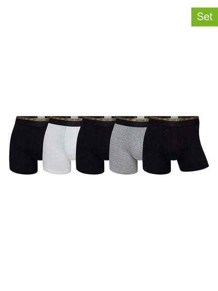 W zestawie:- 5 par bokserek w różnych kolorach- pas / ściągacz: elastyczny- wycięcia nogawek: elastyczne- nadruk: logo- look: jednokolorowy, melanżowy