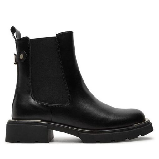 Botki damskie ze skóry naturalnej z ozdobnymi sprzączkami czarne OO274A190 906