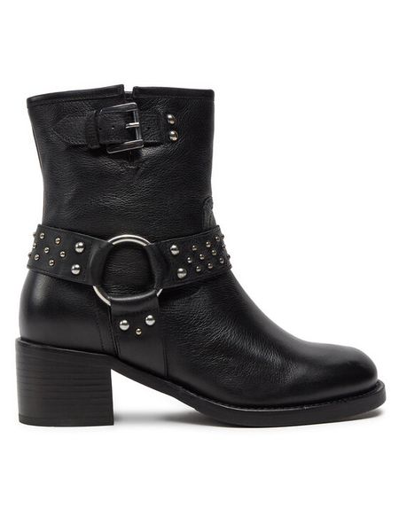 Botki damskie ze skóry naturalnej z ozdobnymi sprzączkami czarne OO274A190 906