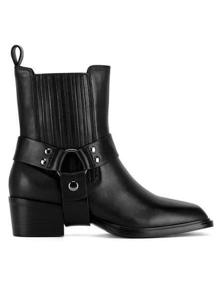 Botki damskie ze skóry naturalnej z ozdobnymi sprzączkami czarne OO274A190 906