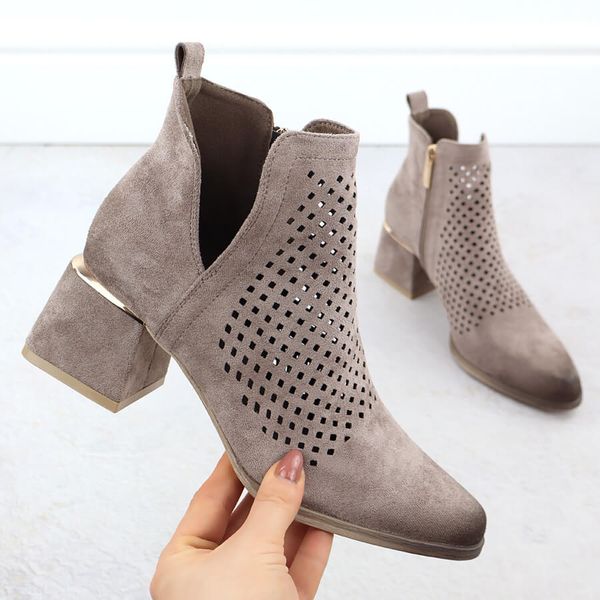 Zamszowe botki damskie na obcasie ażurowe szare Potocki SZ12356