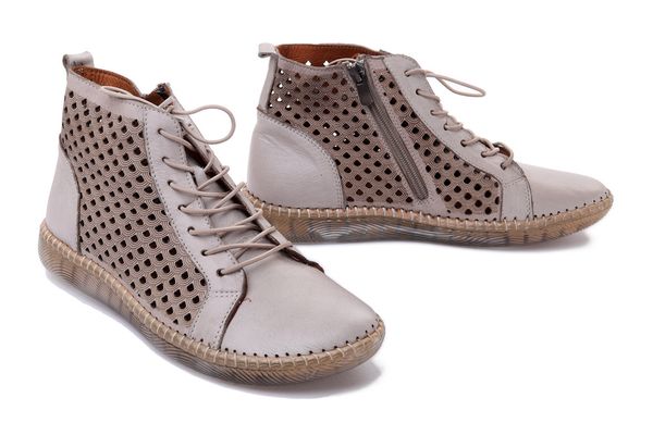 Trzewiki damskie. Naturalna skóra. Ażurowa cholewka. Miękka, skórzana wkładka. Podwójne zapięcie, zamek plus elastyczne sznurowadła. Elastyczna, antypoślizgowa podeszwa.