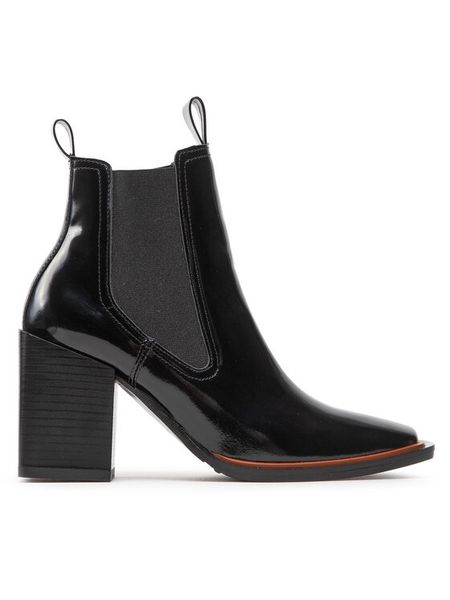 Czarne Botki Lakierowane Vices Typu Trzewiki na Słupku z Ozdobnymi Przeszyciami Nisatte