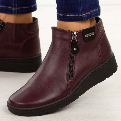 Bordowe skórzane Polskie botki damskie zimowe Deoni D468
