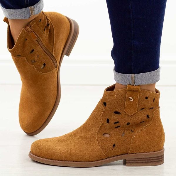 Camelowe zamszowe skórzane botki damskie T.Sokolski Z25-166