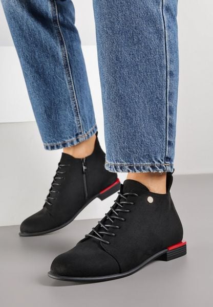 Czarne Botki Typu Trzewiki z Imitacji Zamszu Vices Implie
