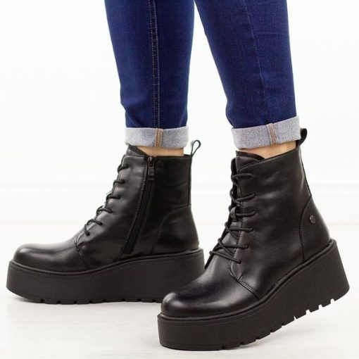 Czarne skórzane botki damskie na platformie M.Daszyński 2478-17