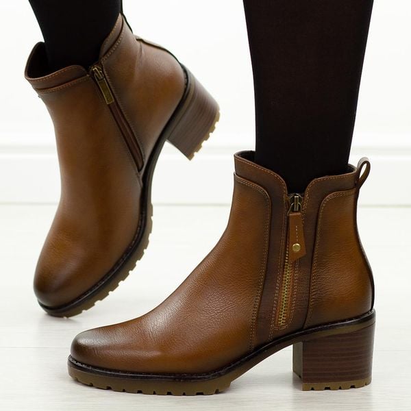 Brązowe botki damskie na obcasie Potocki 12681