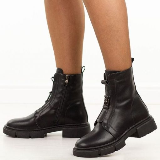 Czarne skórzane botki damskie na traperze Filippo Dbt6524/25