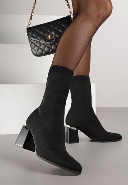 Czarne Skarpetkowe Botki VICES na Słupkowym Obcasie z Metaliczną Wstawką Anivita