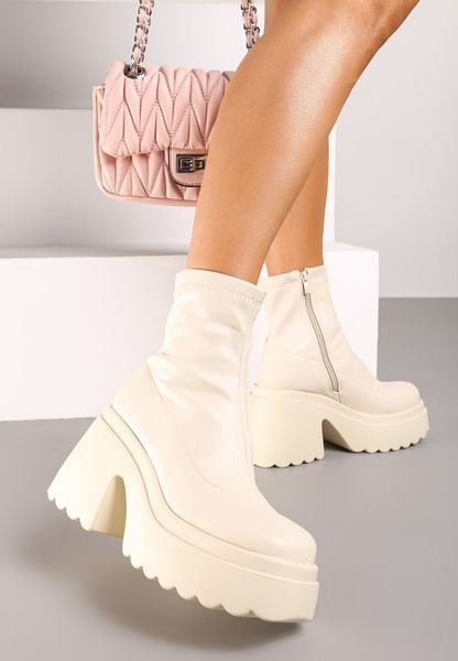 Beżowe Botki na Słupku i Platformie Sztyblety Grunge z Elastyczną Cholewką Lericea