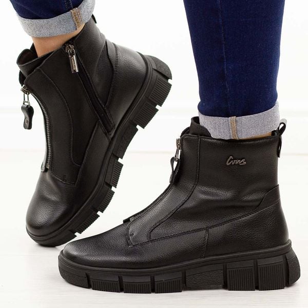Czarne skórzane botki damskie Cambell 19376