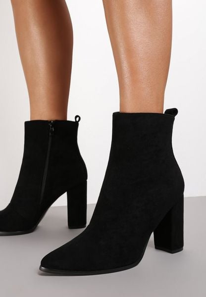 Botki Aeriel na słupku i delikatnej platformie. Cholewka sięgająca za kostkę, ze szpiczastym noskiem. Zapinane po wewnętrznej stronie cholewki na zamek błyskawiczny. Nieocieplane, doskonałe na przejściowe miesiące. Wykonane z ekozamszu w klasycznym kolorze. Pasują do jeansów, chinosów albo eleganckich sukienek.