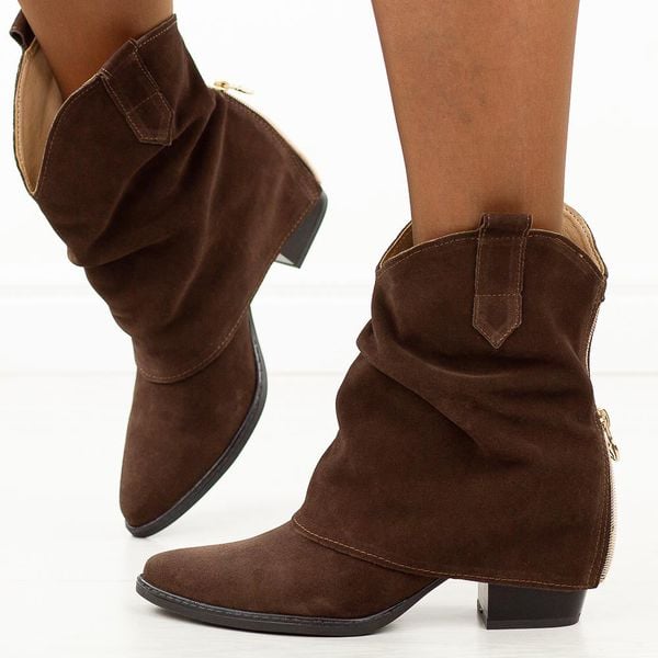 Czekoladowe zimowe Polskie kowbojki damskie Deoni D394