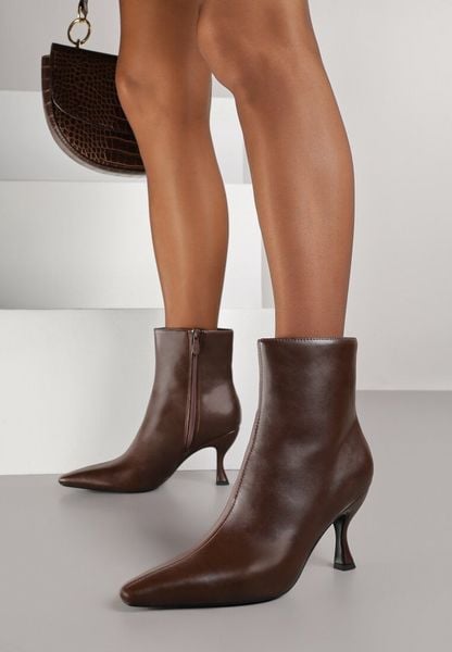 Brązowe Botki Vices na Szpilce Typu Kaczuszce Falunnea