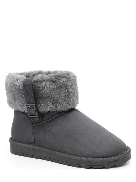– wodoodporny materiał wierzchni o wyglądzie skóry welurowej („microsuede”)- zapięcie: bez- noski: zaokrąglone- detale: ozdobne i formujące szwy, wstawka ze sztucznego futerka- zapiętki: wzmocnione- wyściółka: ciepła- podeszwa: antypoślizgowa- kolor producenta: Charcoal