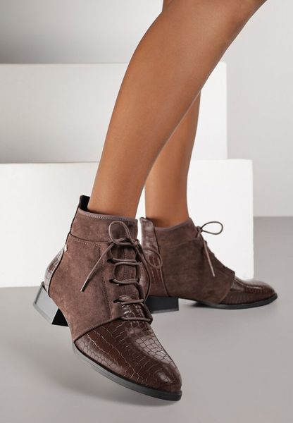 Brązowe Sznurowane Botki Vices do Kostki z Wężowym Tłoczeniem Wodvira