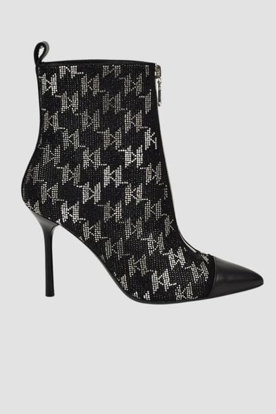 Czarne damskie skórzane botki na szpilce Ankle Boot Monogram, marki Karl Lagerfeld.Rozmiar / Długość wkładki:37 / 24cm.38 / 25cm.39 / 26cm.